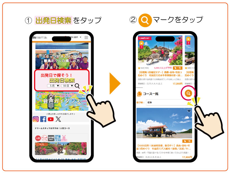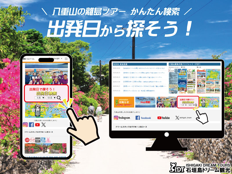 ご希望の出発日を指定して、離島ツアーを簡単に検索できます。