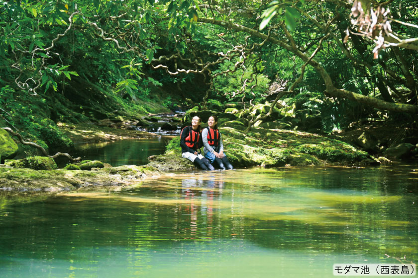 | 行程 | 特定ホテルお迎え、またはユーグレナ石垣港離島ターミナルに集合(07:45) 石垣港(08:15)~西表島大原港(09:00)~ちょっぴりジャングル探検~美原~水牛車で由布島へ(植物園見学・昼食※①)~大原港(13:25)~<竹富島経由※②>~石垣港(14:25) ※①由布島での滞在時間は、昼食を含めて約60分です。 ※②状況に応じて、石垣島への直行便となる場合がございます。 【ちょっぴりジャングル探検/所要時間 約50分】 ユツン川の渓流沿いを歩く、初心者でも楽しめるトレッキングコースです。 比較的歩きやすい道が続き、本格的なジャングルの雰囲気を気軽に体感できます。 片道約15分で目的地の「モダマ池」に到着! ここでは全身で水に浸かったり、泳いだり、魚やエビを探したりと、思いきり川遊びを満喫できます。 大自然の中でのひとときを、心ゆくまでお楽しみください。 |