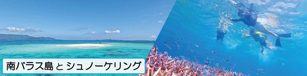 | 行程 | 特定ホテルお迎え、またはユーグレナ石垣港離島ターミナルに集合(07:45) 石垣港(08:15)~西表島大原港(09:00)~南バラス島上陸~シュノーケリング~大原港で昼食※①~大原港(13:25)~<竹富島経由※②>~石垣港(14:25) ※①ガイド特製の「八重山そば」をご用意します。 ※②状況に応じて、石垣島への直行便となる場合がございます。 【南バラス島上陸とシュノーケリング/所要時間 約2時間30分】 シュノーケル船に乗り込んで、海の真ん中に現れる「奇跡の島・南バラス島」へ! 潮が引いた時だけ姿を現す、真っ白な砂の島に上陸。 360度エメラルドブルーに囲まれる幻想的な景色の中で、最高の記念写真を。 上陸後は透明度抜群のポイントへ移動してシュノーケリング! 丁寧なレクチャー付きで、色鮮やかなサンゴと魚たちが待つ水中世界へご案内します。 ※潮の満ち引きによって、南バラス島の大きさは変わります。 潮位の状況によっては、海面ギリギリでの上陸になる場合がございます。 |