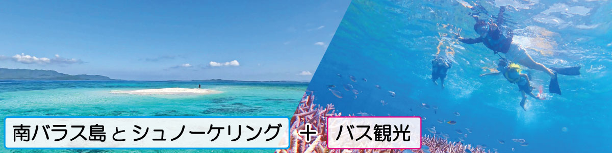 | 行程 | 特定ホテルお迎え、またはユーグレナ石垣港離島ターミナルに集合(07:45) 石垣港(08:15)~西表島大原港(09:00)~南バラス島上陸~シュノーケリング~大原港で昼食※①~大原港(13:25)~竹富港(14:05)~竹富島バス観光※②(カイジ浜〔星砂の浜〕<下車>・コンドイビーチ<車窓>・集落内散策)~竹富港(15:10)~石垣港(15:25) ※①ガイド特製の「八重山そば」をご用意します。 ※②竹富島の見どころを約50分で手軽に楽しめるバス観光です。 【南バラス島上陸とシュノーケリング/所要時間 約2時間30分】 シュノーケル船に乗り込んで、海の真ん中に現れる「奇跡の島・南バラス島」へ! 潮が引いた時だけ姿を現す、真っ白な砂の島に上陸。 360度エメラルドブルーに囲まれる幻想的な景色の中で、最高の記念写真を。 上陸後は透明度抜群のポイントへ移動してシュノーケリング! 丁寧なレクチャー付きで、色鮮やかなサンゴと魚たちが待つ水中世界へご案内します。 ※潮の満ち引きによって、南バラス島の大きさは変わります。 潮位の状況によっては、海面ギリギリでの上陸になる場合がございます。 |