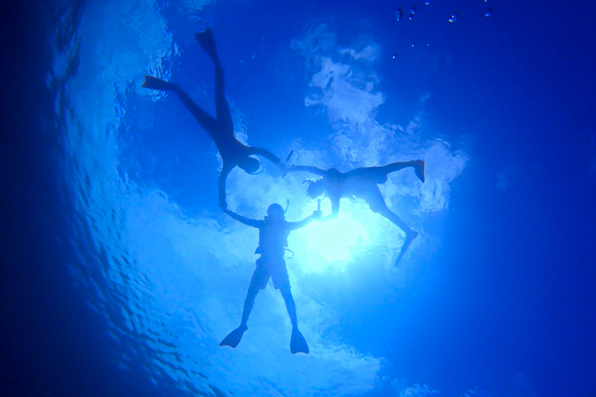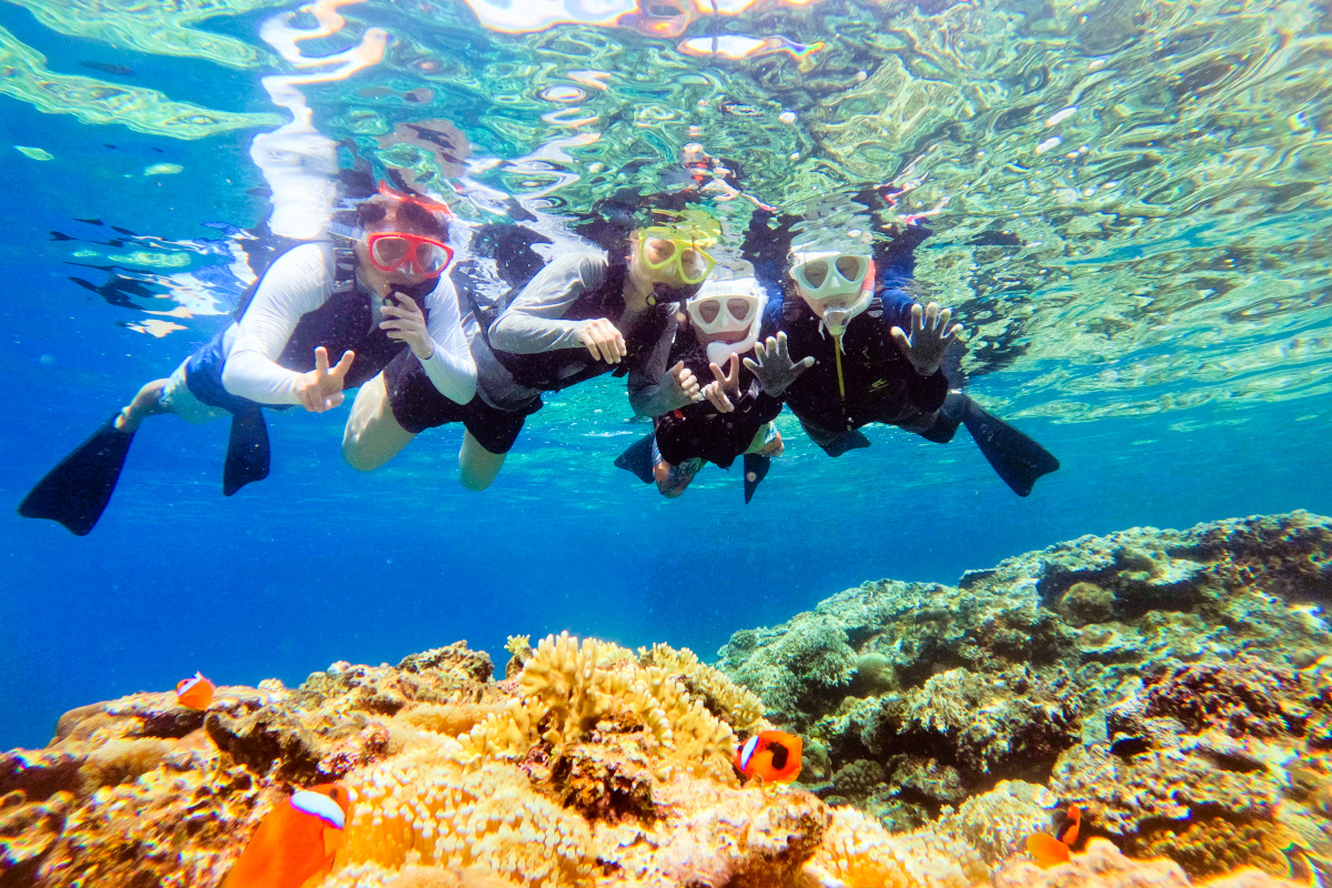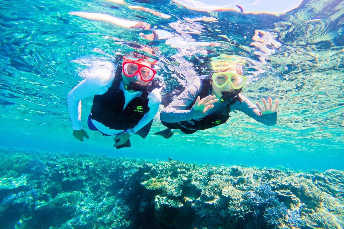 ★海の真ん中で最高の記念撮影を楽しんだ後は、透明度抜群のポイントでシュノーケリング。